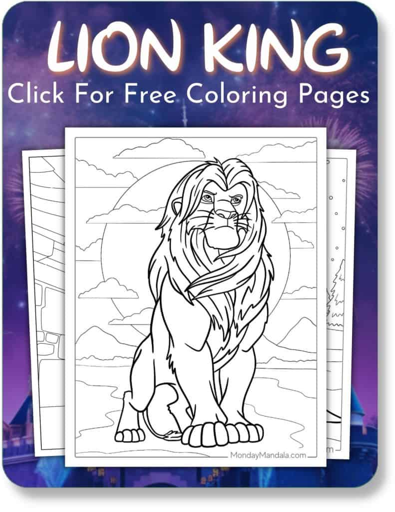 Any coloring page featuring the Lion King works for this idea, but choosing one featuring a “roaring” lion is particularly fun.